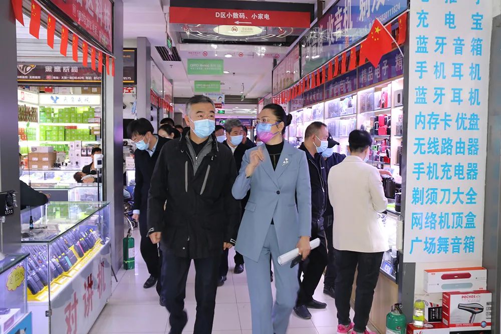 2021年10月21日上午,,,,,,,,天下工商联第八联系调研组在天下工商联办公厅主任李春光的向导下莅临非凡国际电子城,,,,,,,,相识市场生长情形,,,,,,,,及疫情防控常态化市场谋划的问题。。。。。。。省、市工商联及新华区相关向导陪同,,,,,,,,非凡国际集团总裁兼非凡国际电子城总司理李美璇等高层向导举行热情接待。。。。。。。