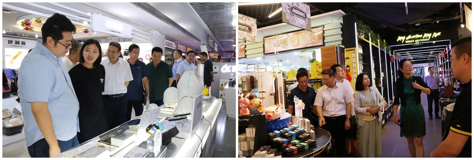 随后 ,,,,,调研组一行在李总的陪同下对非凡国际电子城卖场举行了实地走访。 。。 。。 。。。调研组先后走访了大疆无人机体验店、oppo官方旗舰店 ,,,,,remax工厂直营店 ,,,,,得力办公、机乐堂工厂直营店、小米官方旗舰店等店面 ,,,,,电子城众多的黑科技产品、详尽专业的治理、高端大气的主力店形象给调研组留下了深刻印象。 。。 。。 。。。走访时代 ,,,,,调研组和经销商就店面运营情形举行了交流。 。。 。。 。。。