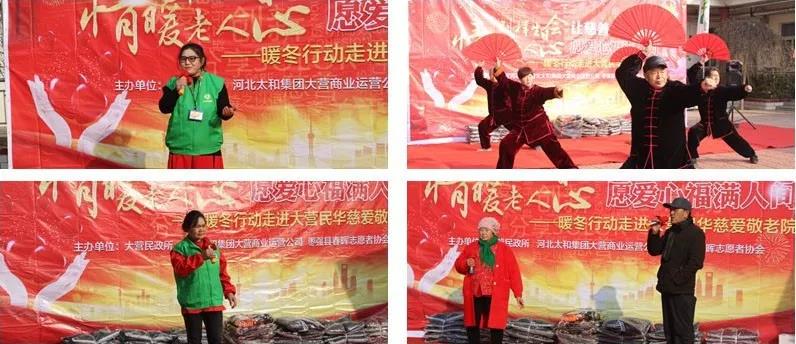 寒风阻挡不住眷注的脚步,,,,,,,严严寒却不了温暖的慰问。。。。。。。陪同着冬日温暖的阳光,,,,,,,满怀着激动的心情,,,,,,,非凡国际大营商业运营公司总司理马雪妹向导员工代表和中国·大营国际皮草生意中心、中国·大营国际裘皮城的爱心商家们,,,,,,,携带着爱心物资,,,,,,,与枣强县春晖自愿者协会的爱心人士们一起欢聚大营民华慈祥敬老院,,,,,,,一同为院内的老人们庆祝整体生日,,,,,,,并为老人们献上了一首首好听的歌曲、悦目的演出,,,,,,,将最优美真挚的祝福送给老人们。。。。。。。